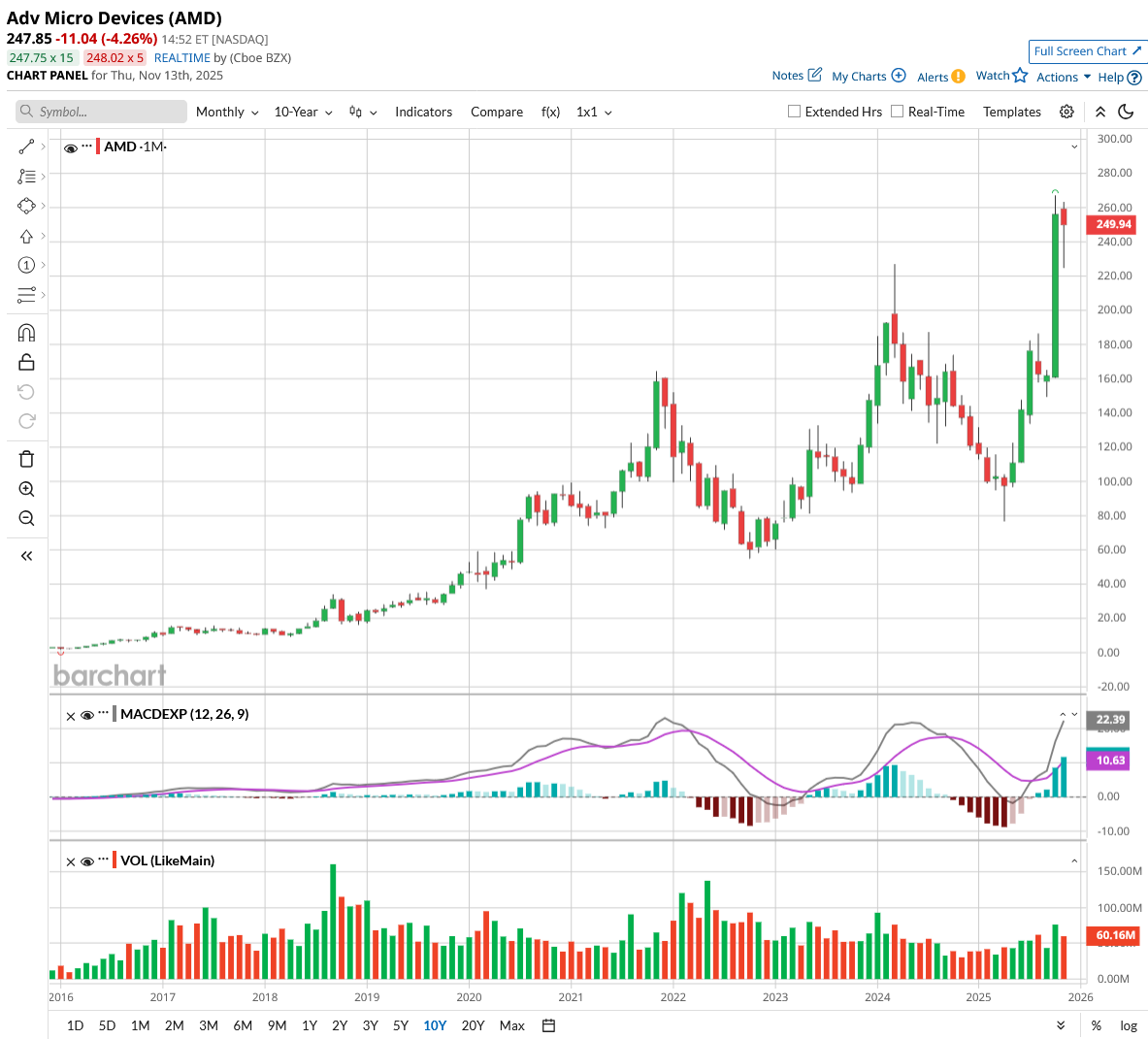 AMD is optimistic about strong demand and partnerships with other Big Tech companies, including OpenAI, Meta (META), and Oracle (ORCL), validating its growing presence in the AI infrastructure market.