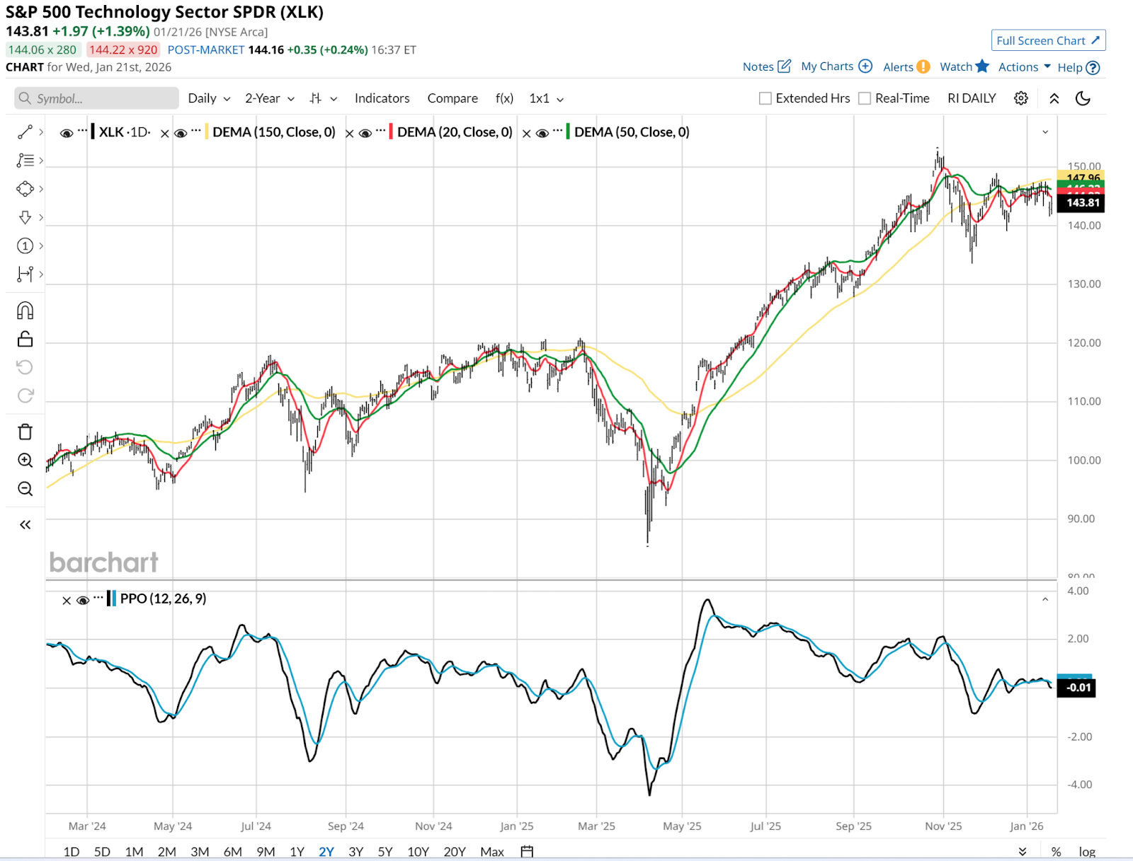 This shortened week started off with the tech sector doing what it has done best this month, and even back in late 2025 — leading to the downside. Wednesday’s rebound is par for the course in modern markets, where every small dip gets a second chance. But the tech sector, specifically through the eyes of the biggest and longest-running exchange-traded fund (ETF) dedicated to that sector, is teetering.