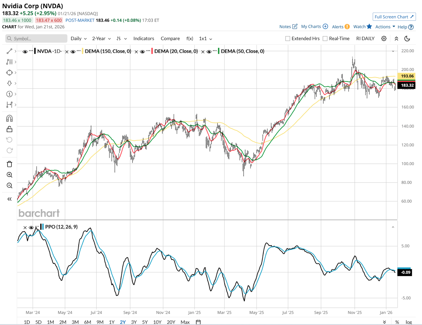 Of the top 25 holdings, most have succumbed to the January rotation out of expensive tech. However, three specific pockets are currently showing green on the screens. Whether it is the valuation reset in areas like software, as those companies start to look more like utilities, or simple buyer exhaustion in the case of stocks like top holding Nvidia (NVDA), this is not 2025 all over again. Price gains are hard to come by for traders here. And when they do, as we saw on Wednesday, it's just another step in a tight trading range.