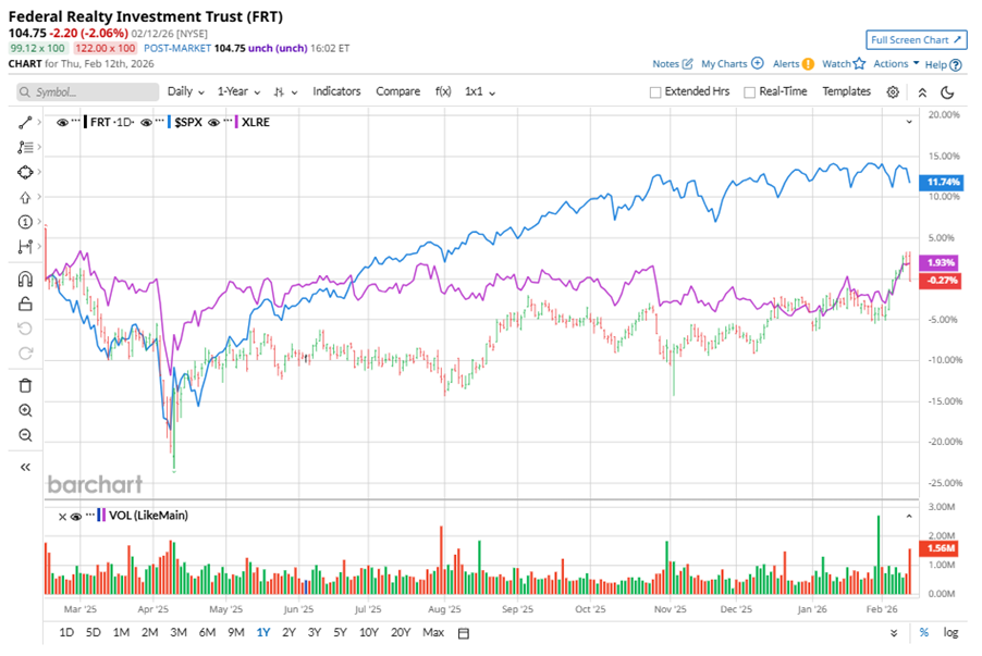 Shares of this shopping center-focused retail REIT have underperformed the broader market over the past year. FRT has declined 5.3% over this time frame, while the broader S&P 500 Index ($SPX) has rallied nearly 12.9%. However, in 2026, FRT stock is up 3.9%, surpassing the SPX’s marginal fall on a YTD basis.