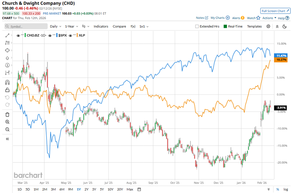 Shares of the Ewing, New Jersey-based company have underperformed the broader market over the past 52 weeks. CHD stock has decreased 5.6% over this time frame, while the broader S&P 500 Index ($SPX) has gained 12.9%. However, shares of the company are up 19.3% on a YTD basis, outpacing SPX’s marginal decline.