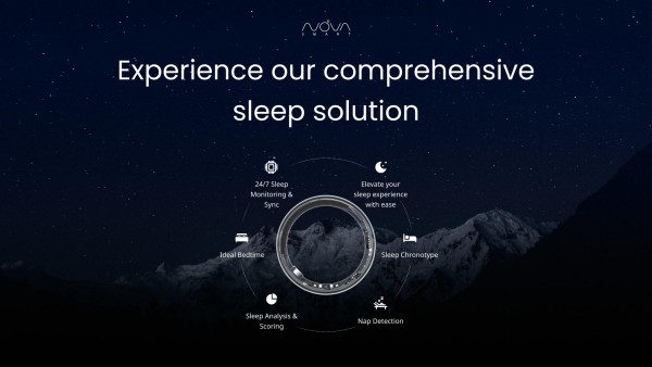 Powered by GPT and Nova AI algorithms, the core strength of the NovaSmart Ring lies in Nova's extensive database and unique algorithms, enabling 24/7 high-precision monitoring, including sleep and activity tracking, as well as body data.