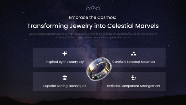The NovaSmart Ring harmoniously blends advanced technology with enduring elegance. Crafted from sapphire and titanium materials and boasting a transparent exterior, each ring represents a seamless fusion of carefully chosen materials, meticulous inlay techniques, and precise component arrangement. Perfectly blending cutting-edge technology with beauty, the NovaSmart Ring stands as a testament to innovation and timeless design.