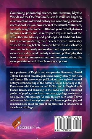 “Mythic Worlds and the One You Can Believe In” is a sharp examination of how deeply rooted myths and misunderstandings of history have fueled – and continue to fuel - global tensions and ideological extremism. Toliver presents a thorough investigation and insightful scrutiny of the natural continuum - framed within a staggering 13.8 billion years of history – to help readers understand the origins of these beliefs and myths and how they sustain nationalism and terrorist movements.