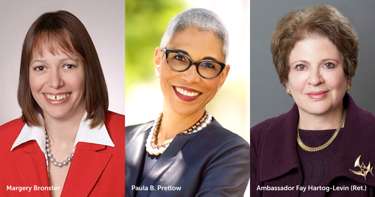 Bronster and Pretlow are stepping into roles currently held by Ambassador Fay Hartog-Levin (Ret.), who has served as a Foundation trustee since 2016 and as the board chair since 2020. Hartog-Levin’s term on the board will conclude June 23, 2023.