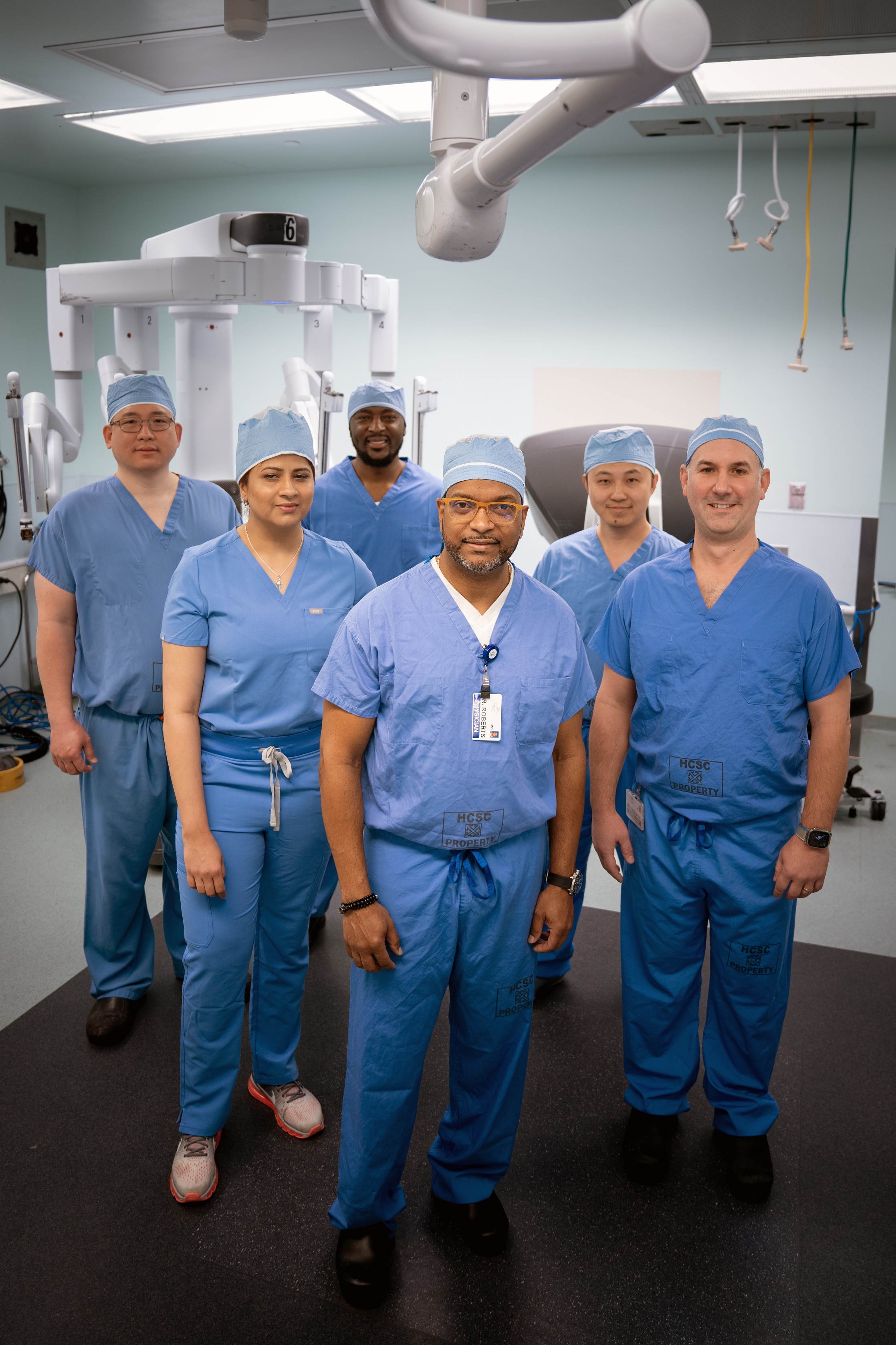 Dr. Faiz Shariff specializes in robotic bariatric surgery, Dr. Ricardo Patton Po and Dr. Benjamin Vabi in colorectal surgery, Dr. Carlos Roberts and Dr. Eav Lim in gynecologic surgery and Dr. Scott Tiedebohl in thoracic surgery.