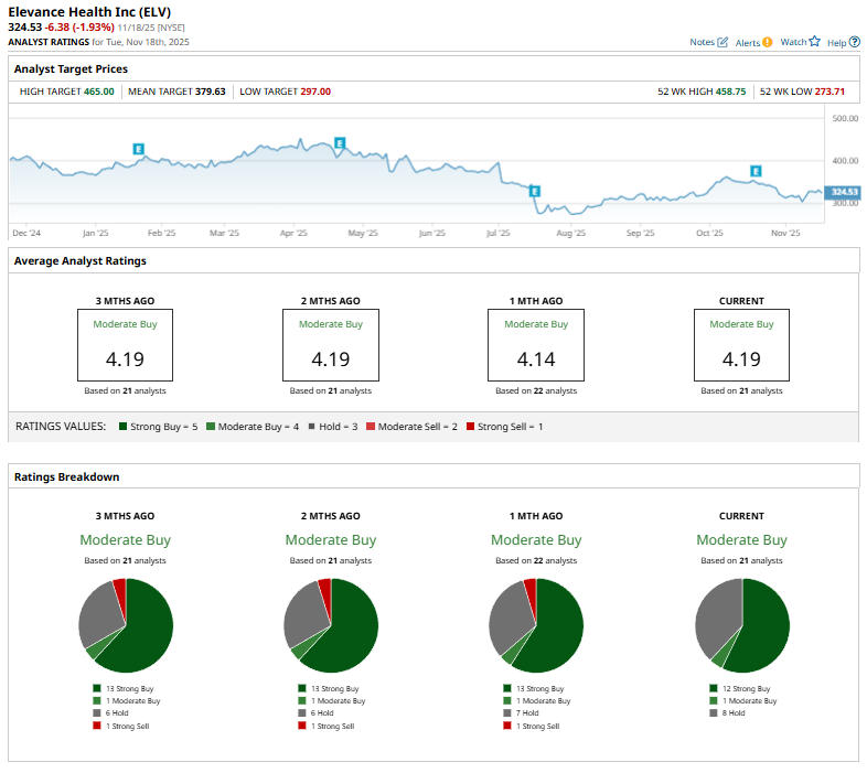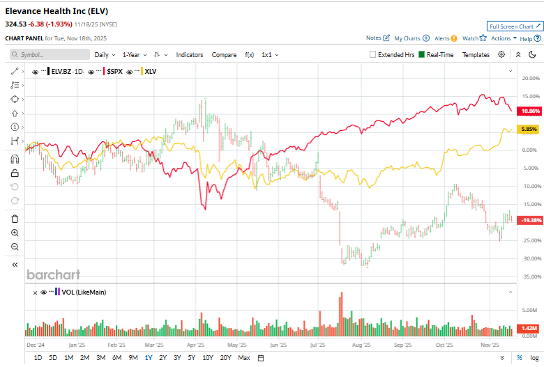 Shares of ELV have fallen behind the broader market. ELV stock has declined 19% over the past 52 weeks and has dipped 12% on a YTD basis. In comparison, the S&P 500 Index ($SPX) has returned 12.3% over the past year and 12.5% in 2025.