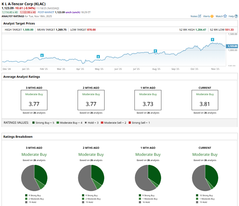 KLAC’s mean price target of $1,269.75 indicates a premium of 13.1% from the current market prices. The Street-high target of $1,500 suggests a robust 33.6% upside potential.