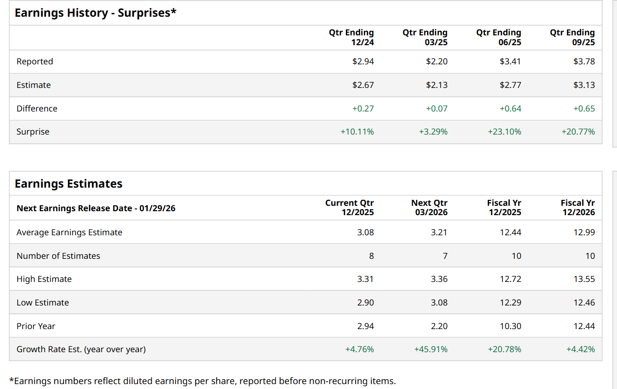 Valued at a market cap of $38.7 billion, The Hartford Insurance Group, Inc. (HIG) is an insurance and financial services company based in Hartford, Connecticut. It primarily focuses on property and casualty insurance, group benefits, and mutual funds. It is scheduled to announce its fiscal Q4 earnings for 2025 in the near future.