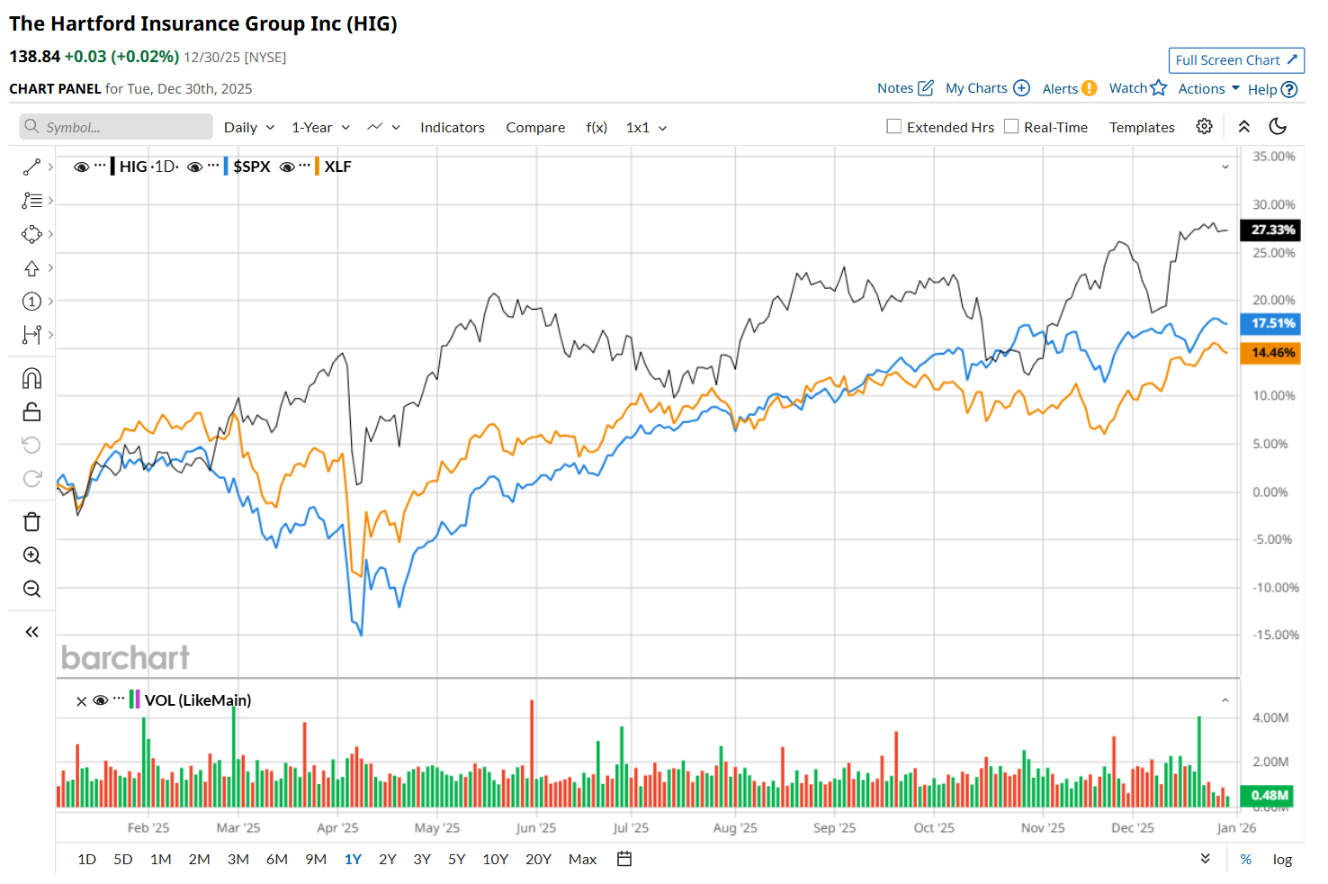Shares of HIG have soared 27.1% over the past 52 weeks, outperforming both the S&P 500 Index's ($SPX) 16.8% return and the State Street Financial Select Sector SPDR ETF’s (XLF) 14.3% uptick over the same time period.