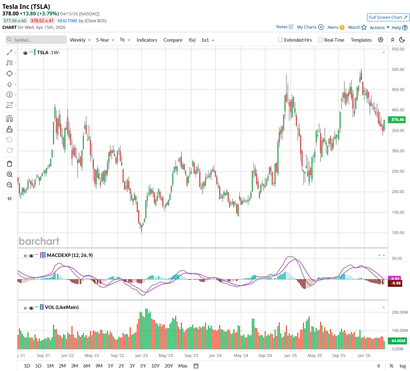 Out of the 43 analysts covering TSLA stock, 15 recommend “Strong Buy,” two recommend “Moderate Buy,” 17 recommend “Hold,” and nine recommend “Strong Sell.” The average Tesla stock price target is $401.39, above the current price of about $377.