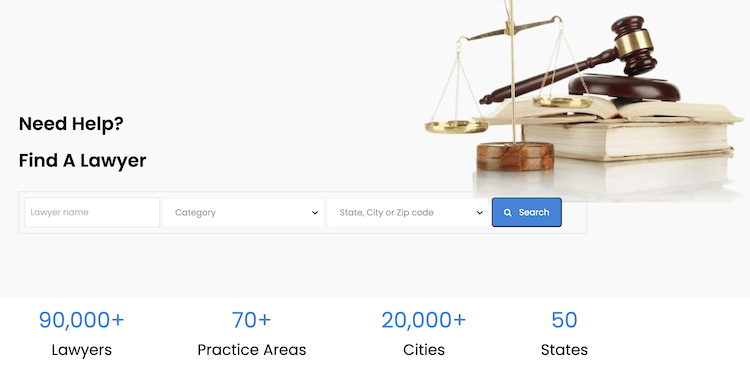 Apart from allowing its users to find lawyers in all 50 states, the site utilizes filtering functions so visitors can filter lawyers by state or even by city. If needed, filters for finding lawyers by practice area are also available.