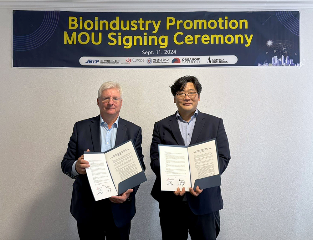 Lambda Biologics, a German company mediating organoid-based animal alternative testing services, signed a Memorandum of Understanding (MOU) with EU-KIST (European branch of Korea Institute of Science and Technology) in September for joint research and development cooperation in animal alternative testing. EU-KIST contributes globally to regenerative medicine, disease modeling, and drug development. Their organoid research plays a crucial role in disease studies and personalized medicine. Through this MOU, Lambda Biologics has taken a step forward as a hub for animal alternative testing.