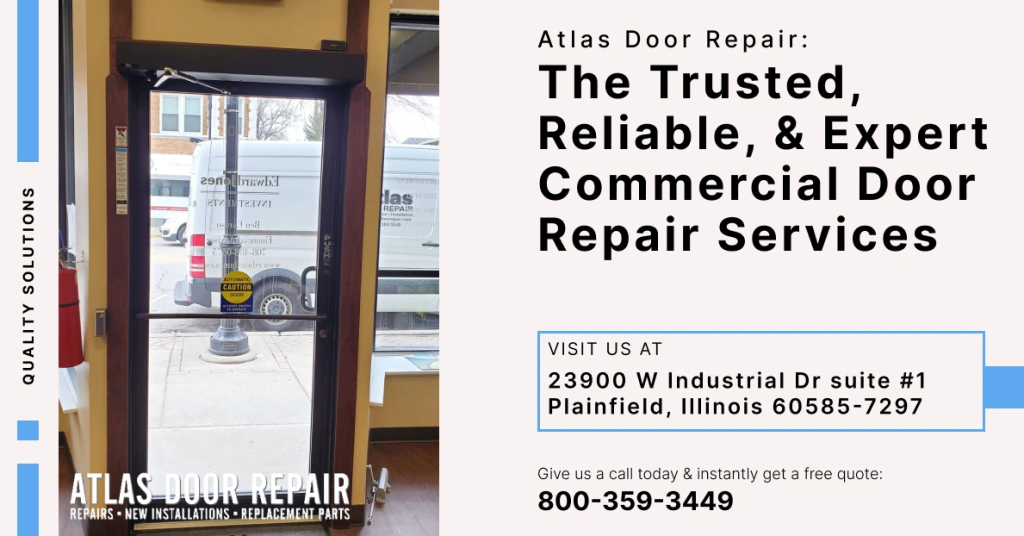 Atlas Door Repair is a company that specializes in repairing a wide range of commercial doors, such as storefront doors, automatic doors, hollow metal doors, and fire doors. Their technicians are proficient in resolving a wide range of door issues, including lock and frame repairs, misalignment, and damaged hinges, using the most advanced tools and expertise. Atlas Door Repair also provides preventative maintenance programs to guarantee that minor issues are identified and resolved prior to the occurrence of costly repairs or replacements.