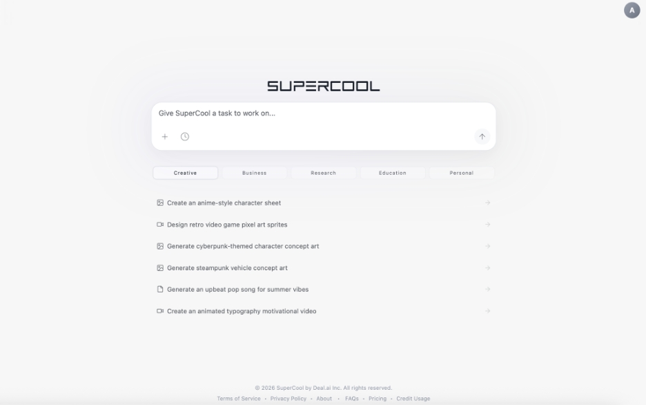 Supercool operates as an AI agent for creative execution, producing complete outputs across formats including presentations, music, video, photography, documents, and visual assets. Rather than generating drafts that require further assembly, the system delivers finished creative materials that can be published or shared immediately.