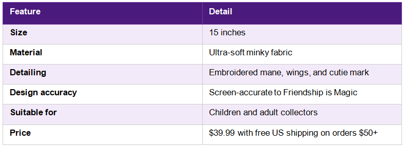 The table below provides a breakdown of key product details for the Princess Luna plush.