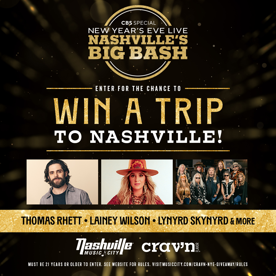 Through December 7, shoppers of Crav’n Flavor can enter a sweepstakes for a chance to win a trip to New Year’s Live: Nashville’s Big Bash. The grand prize for two people includes roundtrip domestic coach airfare to Nashville, three-night hotel accommodations, two VIP passes to a hospitality area and concert viewing for the Jack Daniel’s New Year’s Eve Live: Nashville’s Big Bash, one Music City gift bag, one Music City attraction pass for two people and one autographed guitar from the event. Three runners-up will each receive one autographed guitar. Click here to enter. Click here for rules.