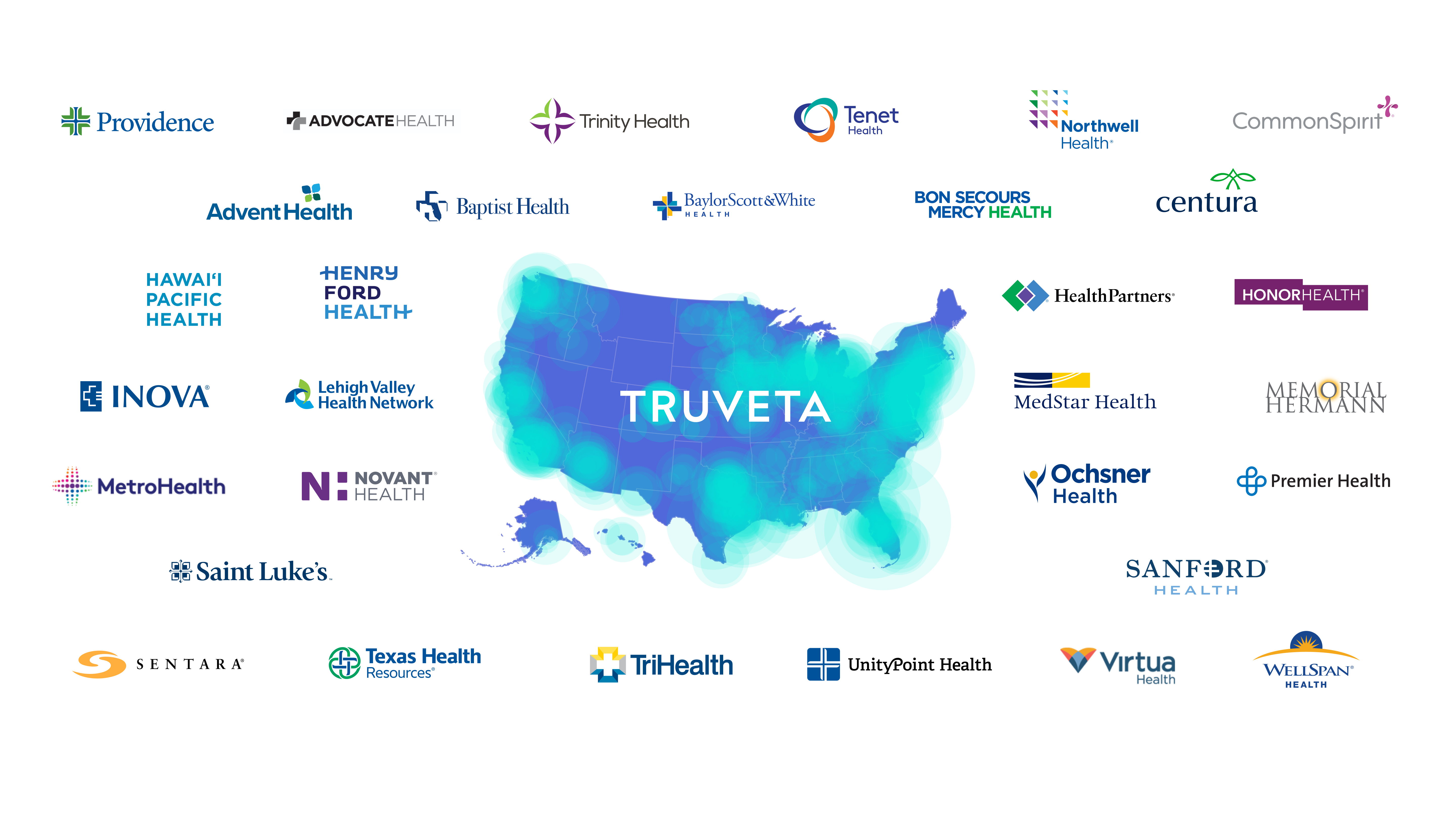 Truveta membership includes Providence, Advocate Aurora Health, Trinity Health, Tenet Healthcare, Northwell Health, AdventHealth, Baptist Health of Northeast Florida, Baylor Scott & White Health, Bon Secours Mercy Health, Centura Health, CommonSpirit Health, Hawaii Pacific Health, HealthPartners, Henry Ford Health System, HonorHealth, Inova, Lehigh Valley Health Network, MedStar Health, Memorial Hermann Health System, MetroHealth, Novant Health, Ochsner Health, Premier Health, Saint Luke’s Health System, Sanford Health, Sentara Healthcare, Texas Health Resources, TriHealth, UnityPoint Health, Virtua Health, and WellSpan Health.