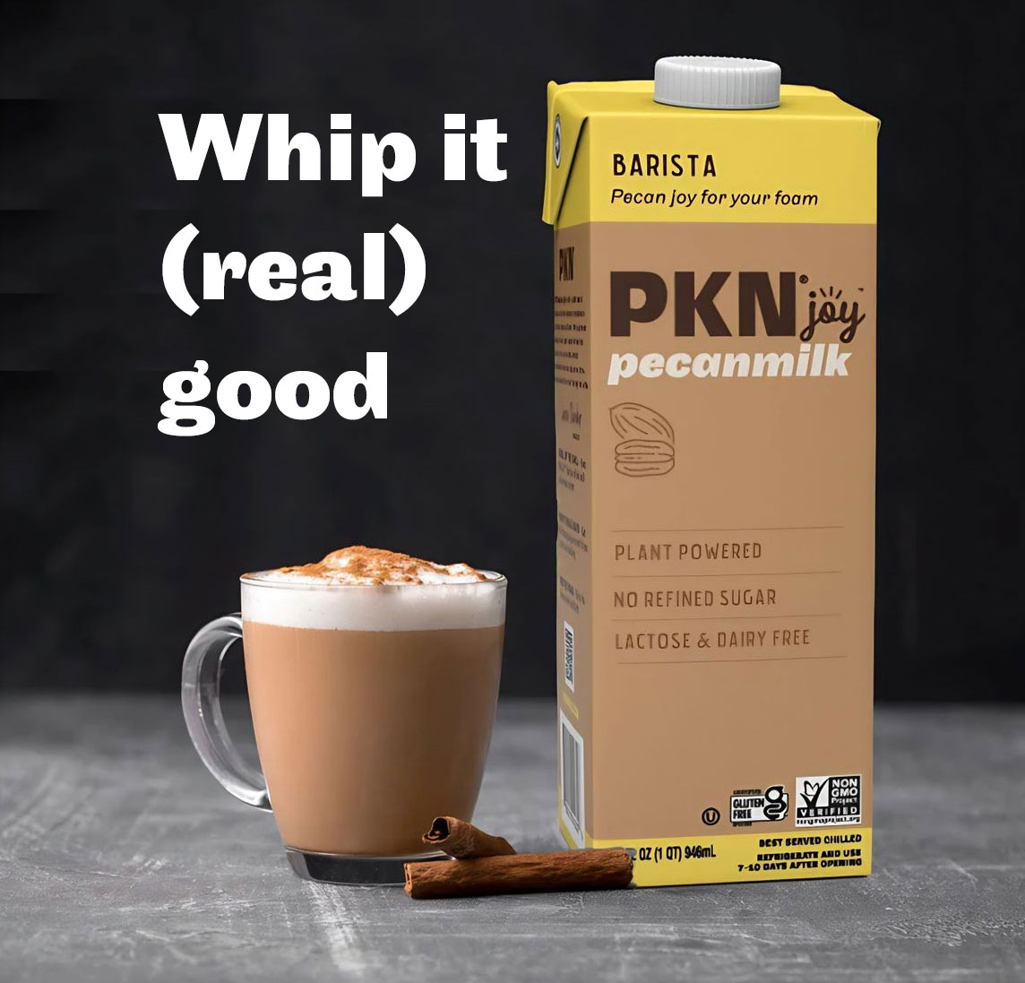 - PKN is thrilled to launch its latest pecanmilk product, PKN JOY™ Barista, offering a delightful, nostalgic experience with a subtle taste of roasted pecans and buttery texture, and when frothed, creates perfect foamability.