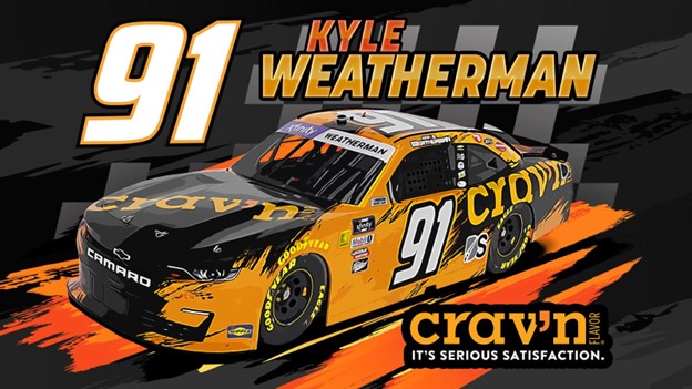 “I can’t tell you how honored I am to represent the Crav’n Flavor line of products and carry their colors on my No. 91 Chevrolet at back-to-back races!” Weatherman said. “I sampled several Crav’n Flavor products last week and all I can say is if you haven’t tried them, you are absolutely missing out! The fact that I’m running the Crav’n Flavor scheme in the Food City 300 makes it that much sweeter.”