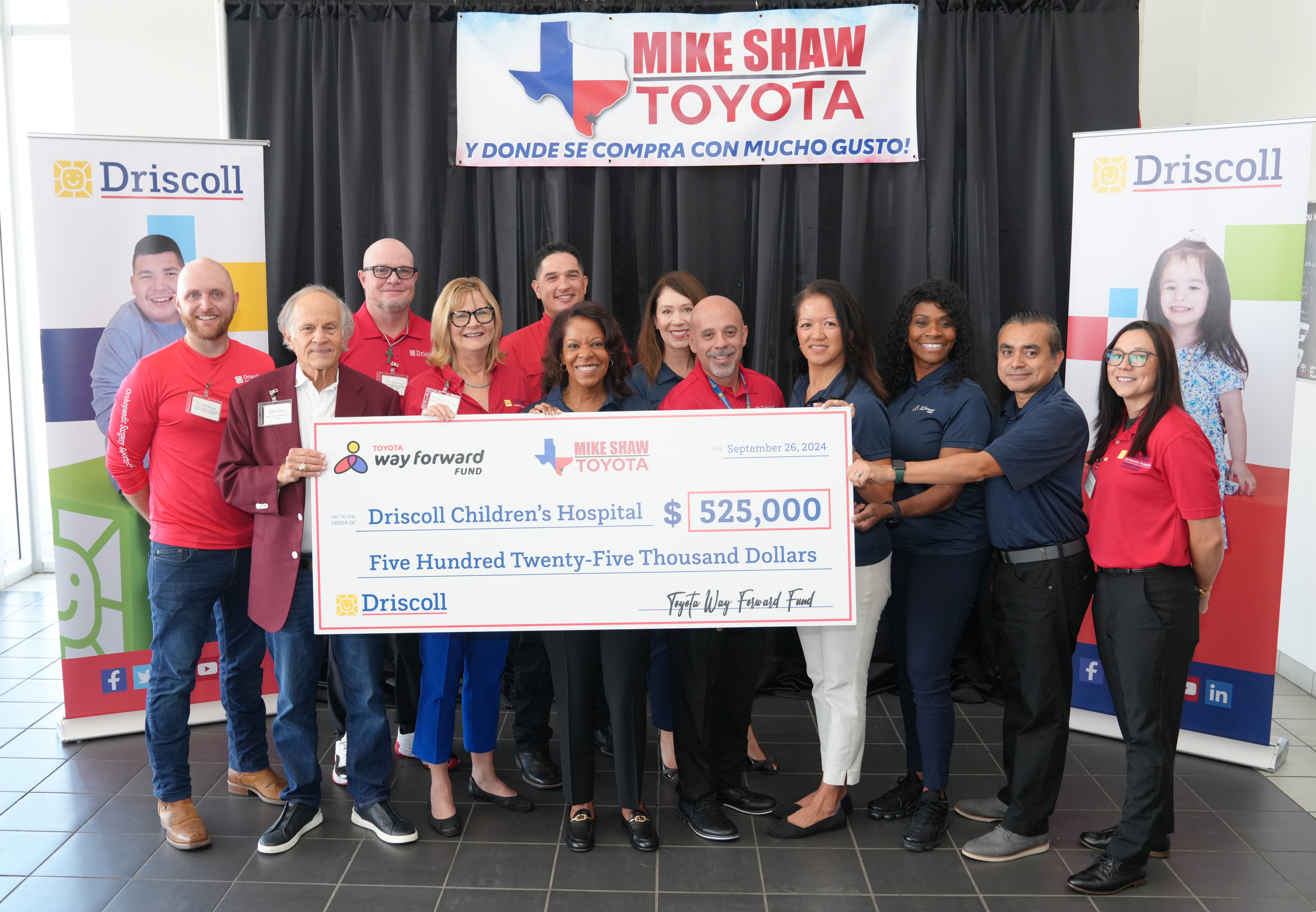 The funds were delivered at a check presentation conference in Robstown at Mike Shaw Toyota where Driscoll and Toyota leadership praised the investment and its direct impact on kids.