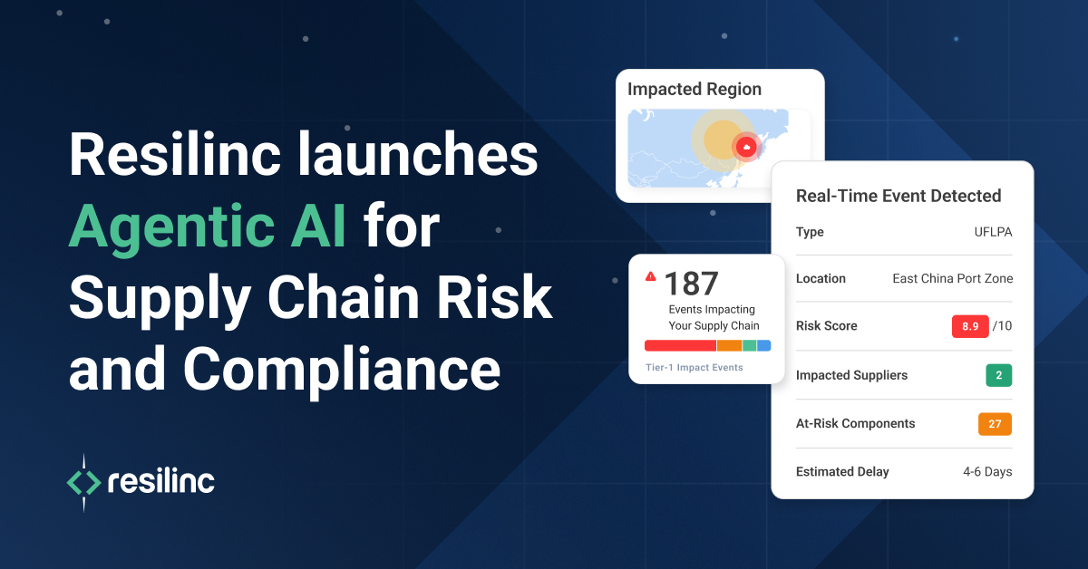 MILPITAS, CA, May 01, 2025 (GLOBE NEWSWIRE) -- Resilinc, the leader in AI-powered supply chain risk and compliance, today announced its Agentic AI platform, a first-of-its-kind autonomous intelligence solution purpose-built to help global enterprises predict, mitigate, and respond to disruptions across complex supply chains. This launch accompanies the debut of a newly rebranded web domain, Resilinc.ai, a destination that reflects the organization’s commitment to delivering autonomous, proactive solutions for supply chain excellence.