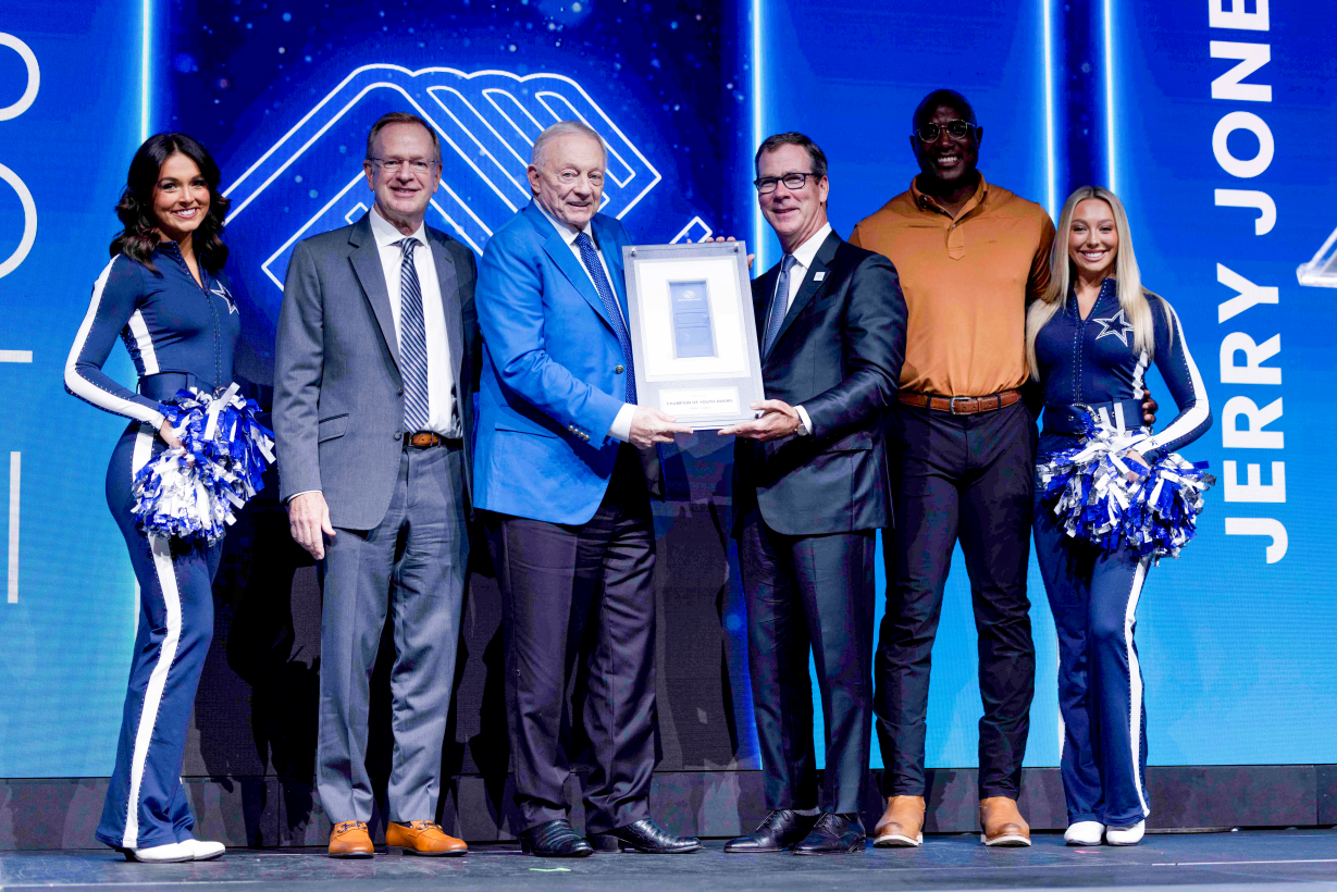 Jerry Jones, owner, president, and general manager of the Dallas Cowboys and former Club Kid from Boys Club of North Little Rock (Arkansas), was the recipient of the 2025 Champion of the Youth Award for his outstanding support of youth in sports. He was presented the award by Boys & Girls Clubs of America President & CEO, Jim Clark, and former Dallas Cowboys star, Pro Football Hall of Fame member and former Boys & Girls Club Kid, DeMarcus Ware.