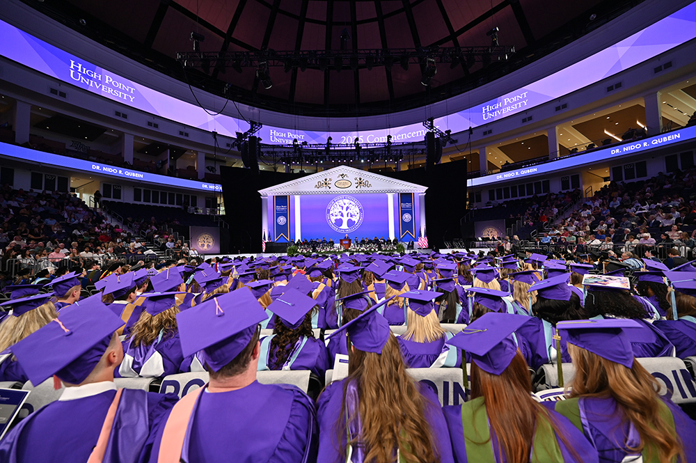 “I hope you turn this time of uncertainty into an opportunity for global change and purpose. I hope you recognize your ability to uplift minds, transform lives and inspire hearts. I hope you grow to understand that legacy is not what you achieve but what you help others achieve. I know you will become disruptors who cherish every moment. Because of you I have faith in the future. Thank you, High Point University Class of 2025, for giving us all hope. Now go ahead and disrupt the world.”