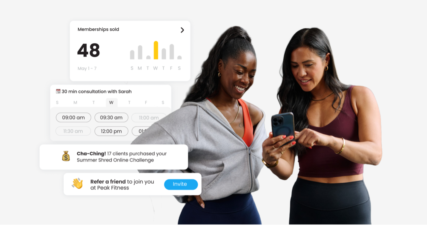- On-Demand and Live Coaching – Offer premium on-demand workout libraries, live and pre-recorded classes, and built-in video calling for 1:1 coaching.