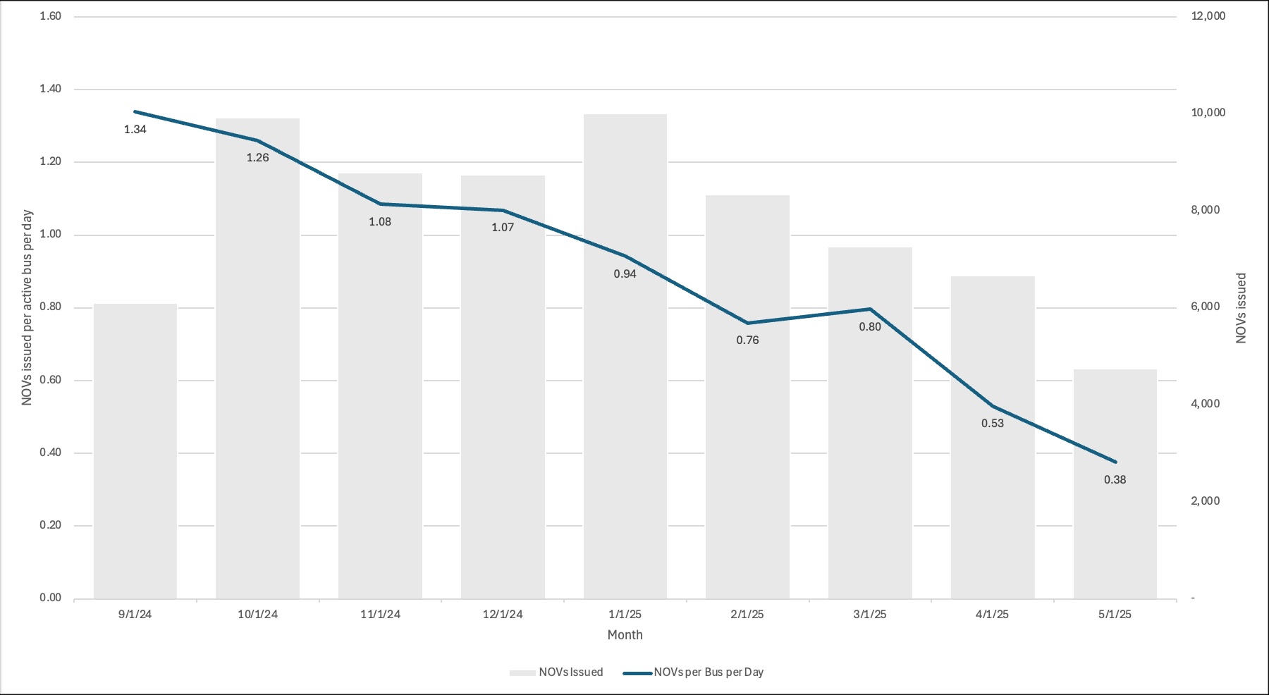 - Positive Program Impact: 72% Drop in Violations Issued per Bus from the First to Last Month of School